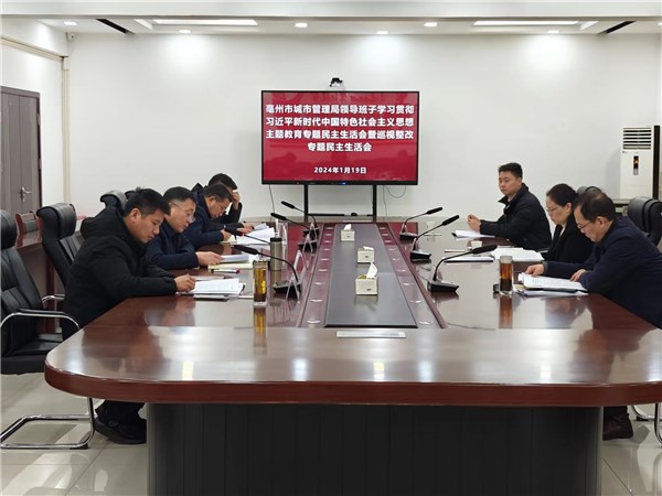 据市委主题教育工作安排,1月19日上午,市城市管理局党组召开学习贯彻习近平新时代中国特色社会主义思想主题教育专题民主生活会暨巡视整改专题民主生活会。会议由党组书记、局长张守雨主持,局领导班子成员参加会议,市政府副市长刘婉贞、市委组织部副部长蒋均平、市纪委监委派驻纪检组刘锦权到会指导。